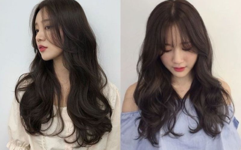 Tóc uốn nhẹ tạo thành sóng lớn từ giữa đến cuối tóc: Gợi cảm và làm điểm nhấn cho phần thon gọn của khuôn mặt.